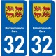 Aufkleber-Sticker in den abmessungen der kennzeichen der abteilung 32 Barcelona-du-Gers wappen und in übereinstimmung mit den abmessungen der nummernschilder herkunft für auto auto.