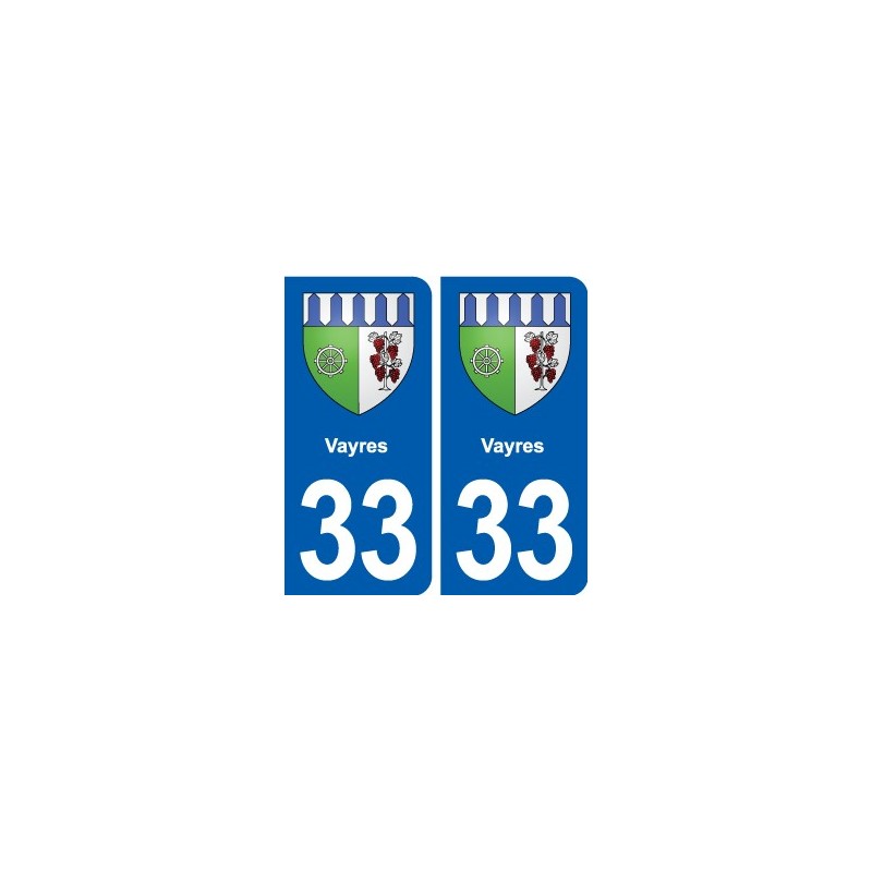 Aufkleber-Sticker in den abmessungen der kennzeichen der abteilung Drei und dreißig Vayres wappen stadt und entspricht den abmessungen der nummernschilder herkunft für auto auto.