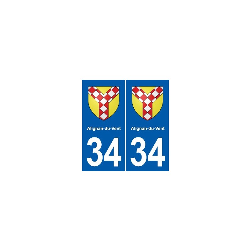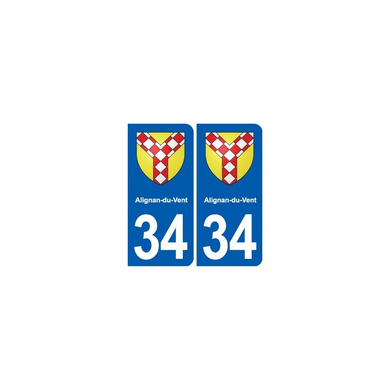 Aufkleber-Sticker in den abmessungen der kennzeichen der abteilung Vier und dreißig Alignan-du-Vent wappen stadt und entspricht den abmessungen der nummernschilder herkunft für auto auto.