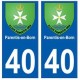 Aufkleber-Sticker in den abmessungen der kennzeichen, die der abteilung 40 offizielle, stadt Parentis-en-Born und in übereinstimmung mit den abmessungen der nummernschilder herkunft für auto auto.