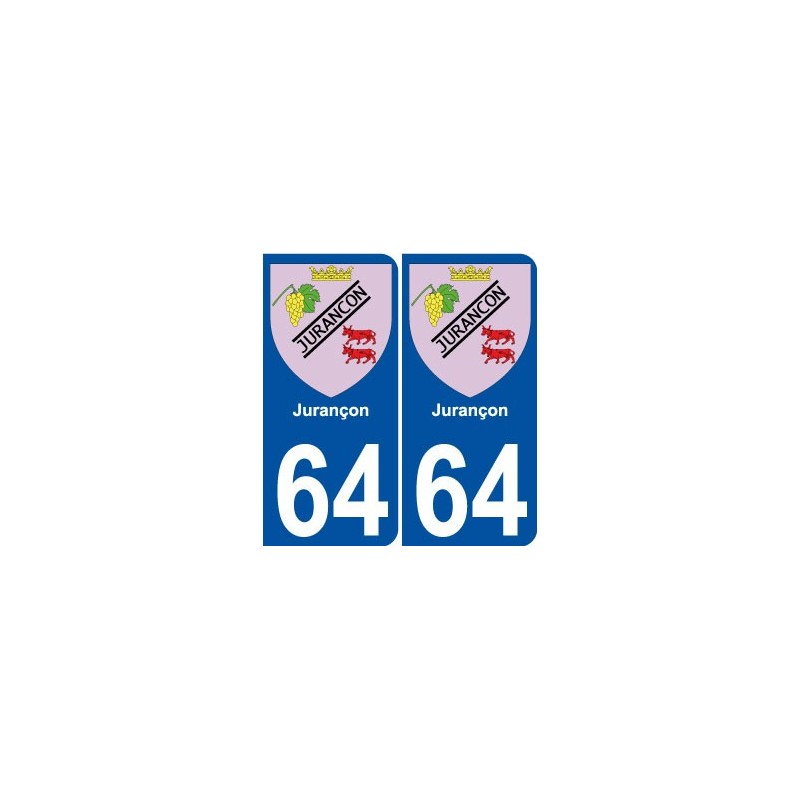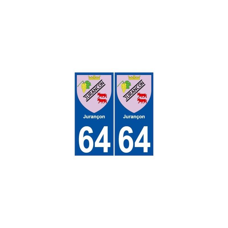 Aufkleber-Sticker in den abmessungen der kennzeichen der abteilung 64 stadt Jurançon und in übereinstimmung mit den abmessungen der nummernschilder herkunft für auto auto.