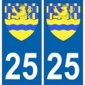 Aufkleber-Sticker in den abmessungen der kennzeichen der abteilung 25 offizielle und in übereinstimmung mit den abmessungen der nummernschilder herkunft für auto auto.