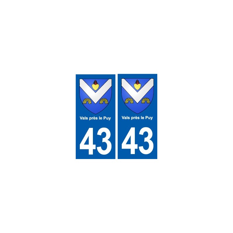 Aufkleber-Sticker in den abmessungen der kennzeichen, 43 stadt Vals in der nähe le Puy wappen offizielle und in übereinstimmung mit den abmessungen der nummernschilder herkunft für auto auto.