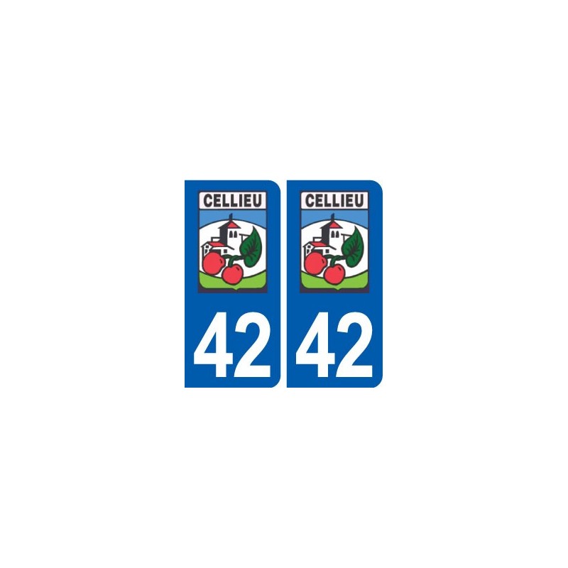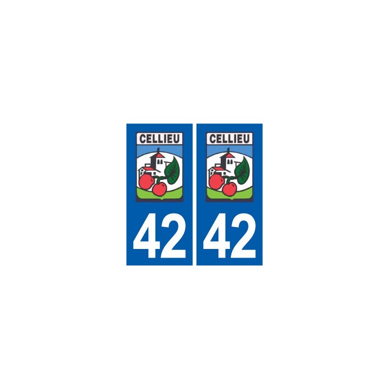 Aufkleber-Sticker in den abmessungen der kennzeichen, die in der abteilung 42 offizielle Cellieu logo der stadt und entspricht den abmessungen der nummernschilder herkunft für auto auto.