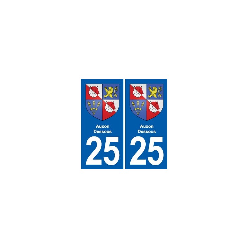 Pegatinas Pegatinas el tamaño de las placas de matrícula para el departamento deVeinticinco Auxon-Dessous escudo de armas la ciudad se ajusta a las dimensiones de las placas de los orígenes para el coche auto.