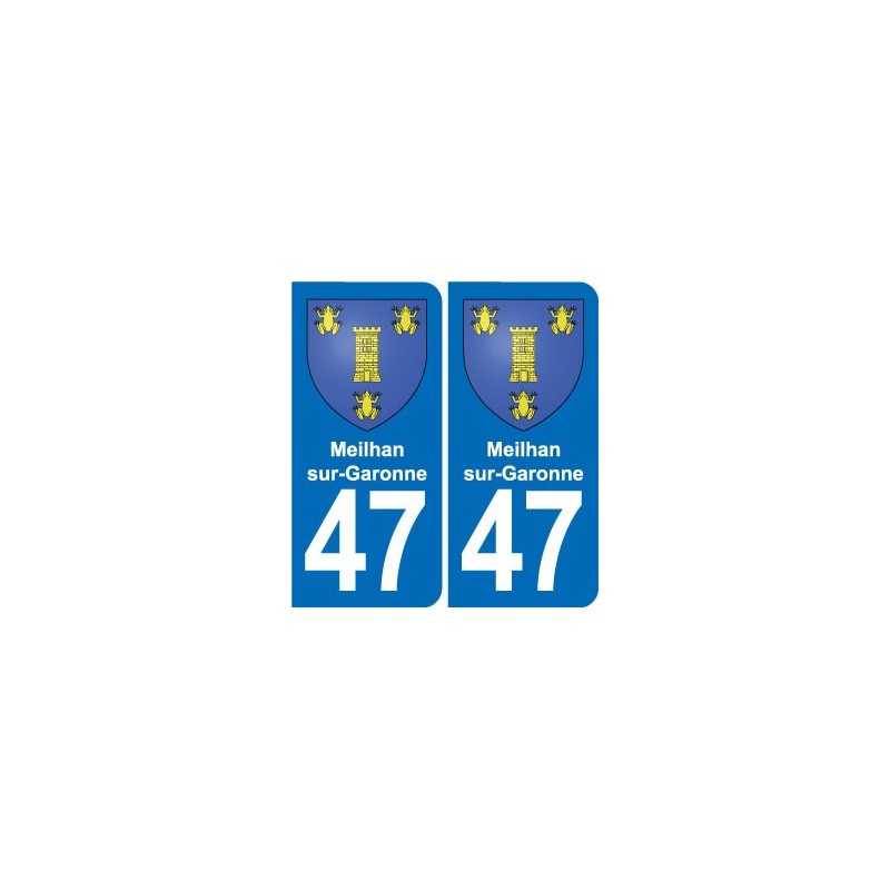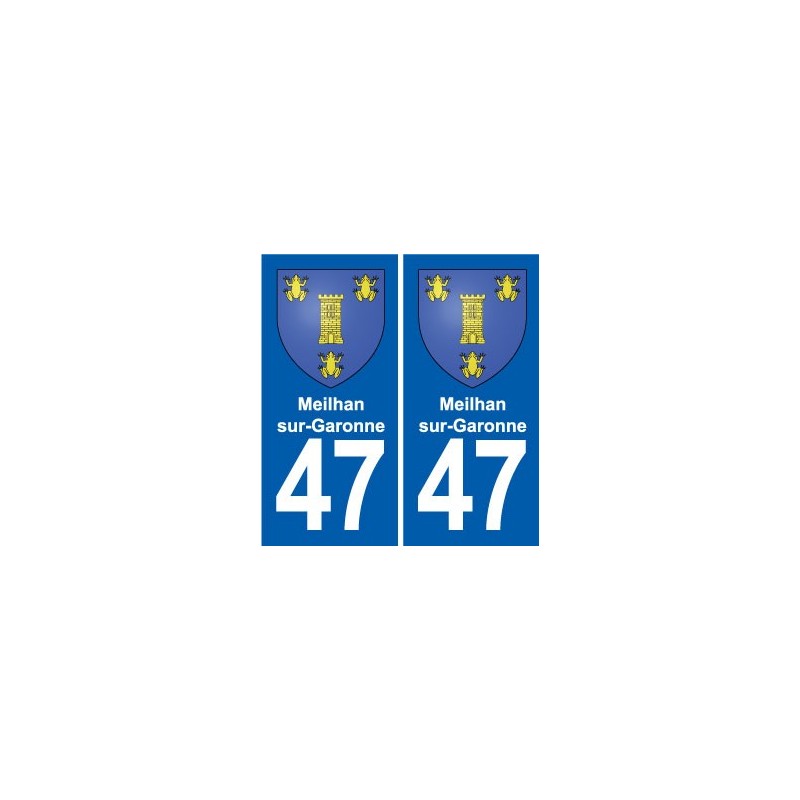 Pegatinas Pegatinas el tamaño de las placas de matrícula para el departamento de Cuarenta y sieteMeilhan-sur-Garonne, escudo de armas la ciudad se ajusta a las dimensiones de las placas de los orígenes para el coche auto.
