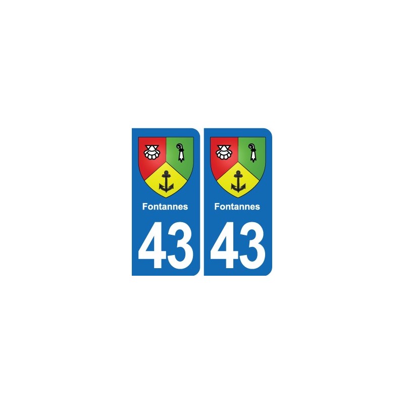 Pegatinas Pegatinas el tamaño de las placas de matrícula 43 de la ciudad de Fontannes escudo de armas oficial y se ajustan a las dimensiones de las placas de los orígenes para el coche auto.