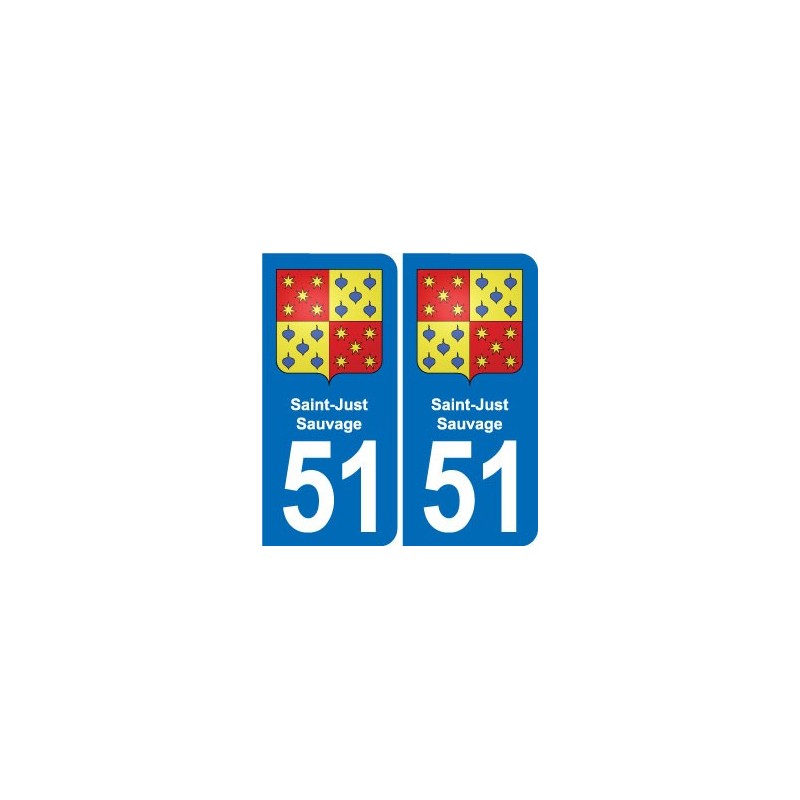 51 Saint-Just-Sauvage escudo de armas de la etiqueta engomada de la placa de registro de pegatinas de la ciudad