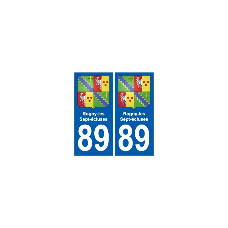 89 Rogny-les-Sept-écluses escudo de armas de la etiqueta engomada de la placa de pegatinas de la ciudad
