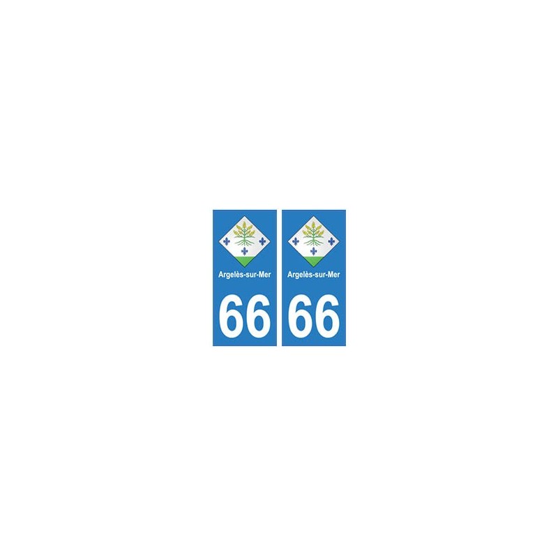 Pegatinas Pegatinas el tamaño de las placas de matrícula para el departamento 66 de la ciudad de Argelès-sur-Mer escudo de armas oficial y conforme a las dimensiones de las placas de los orígenes para el coche auto.