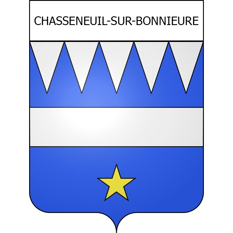 Pegatinas escudo de armas de Chasseneuil-sur-Bonnieure adhesivo de la etiqueta engomada