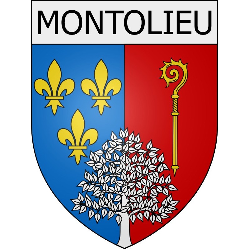Pegatinas escudo de armas de Montolieu adhesivo de la etiqueta engomada