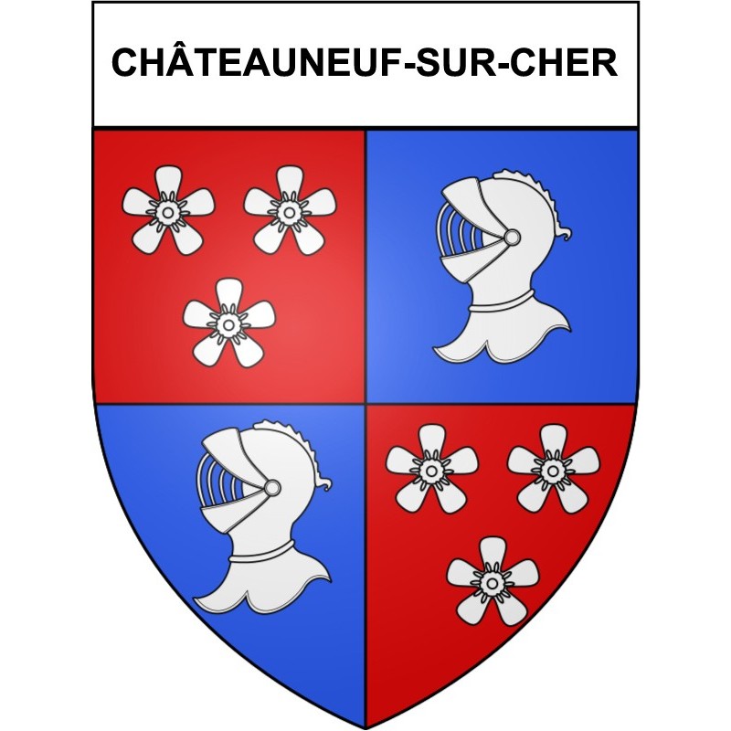 Pegatinas escudo de armas de Châteauneuf-sur-Cher adhesivo de la etiqueta engomada