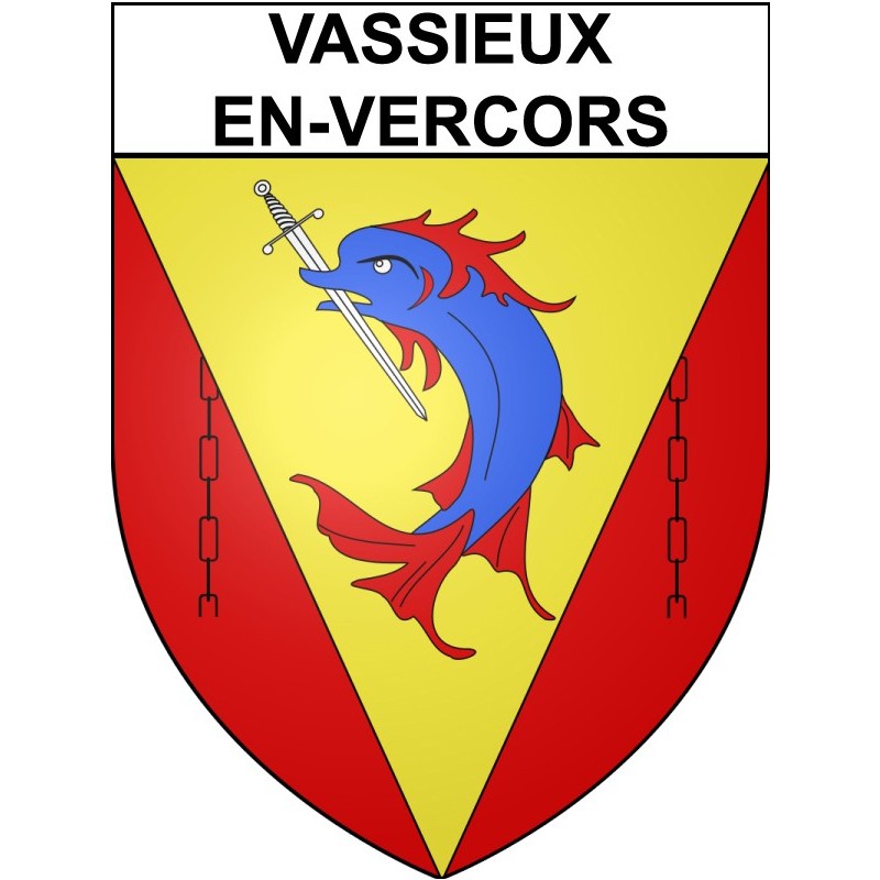 Pegatinas escudo de armas de Vassieux-en-Vercors adhesivo de la etiqueta engomada