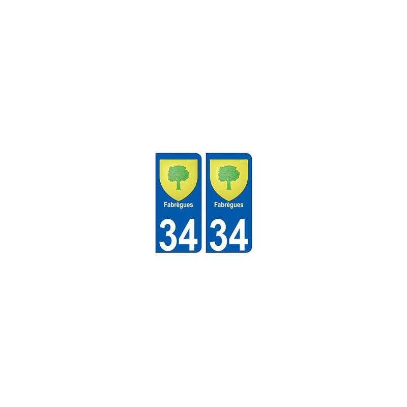 Pegatinas Pegatinas el tamaño de las placas de matrícula para el departamento 34 de la ciudad de Fabrègues escudo de armas oficial y conforme a las dimensiones de las placas de los orígenes para el coche auto.