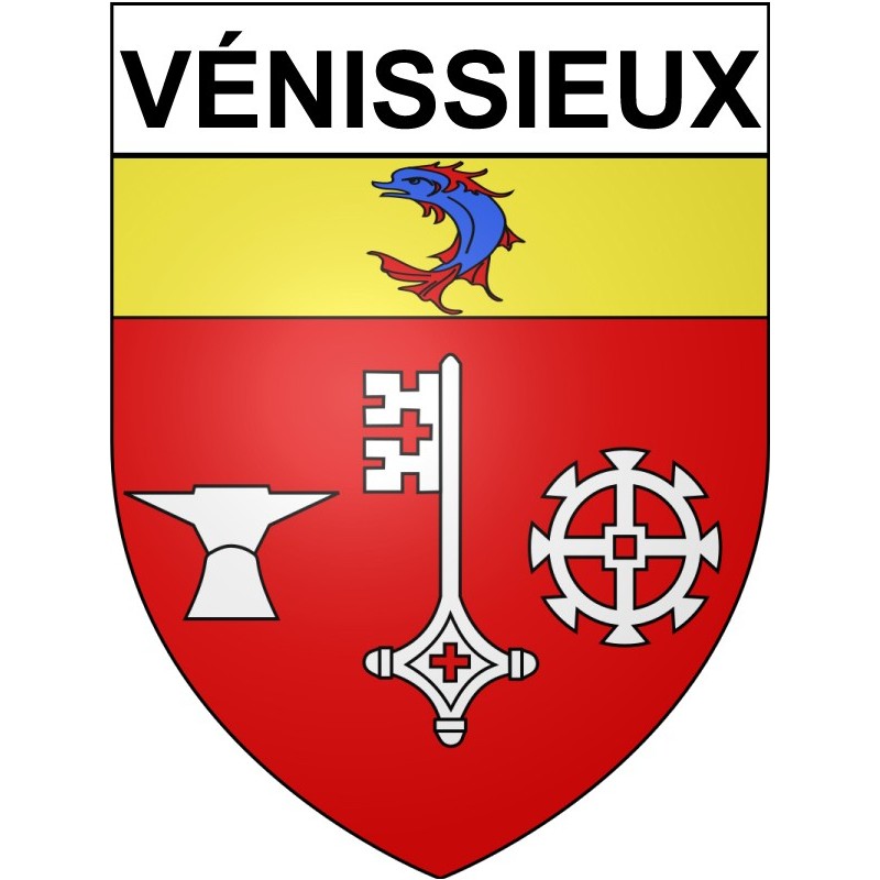 Pegatinas escudo de armas de Vénissieux adhesivo de la etiqueta engomada