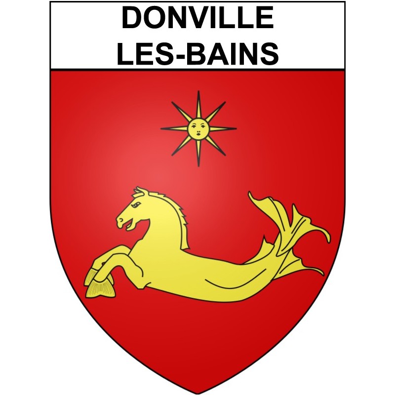 Pegatinas escudo de armas de Donville-les-Bains adhesivo de la etiqueta engomada