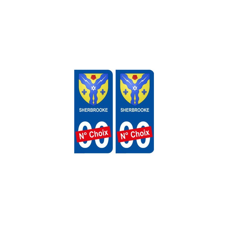 Etiqueta engomada de la placa de matriculación escudo de armas del departamento de automática de Sherbrooke, Canadá, ciudad, número de la etiqueta engomada de la ciudad
