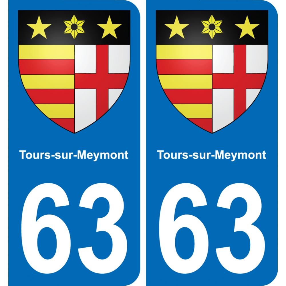 63 Tours-sur-Meymont escudo de armas de la etiqueta engomada de la placa de pegatinas de la ciudad