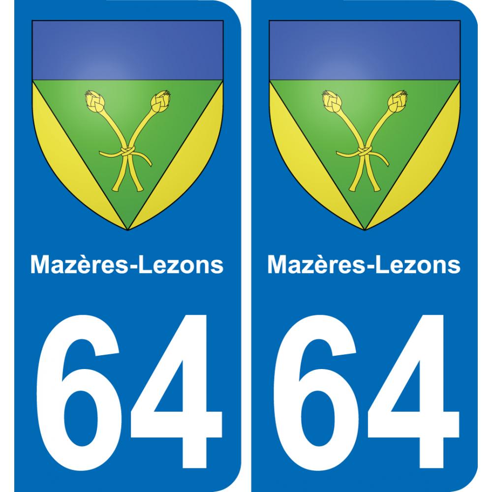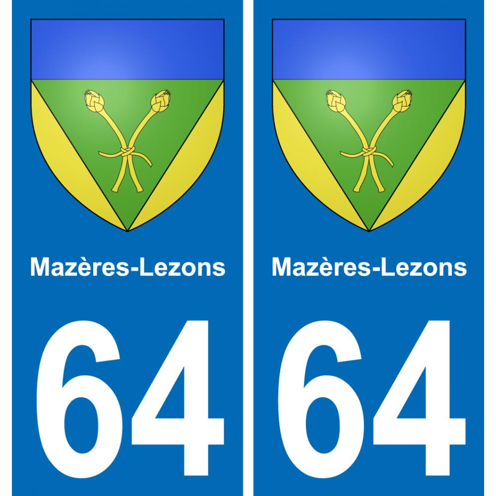 64 Mazères-Lezons escudo de armas de la etiqueta engomada de la placa de pegatinas de la ciudad