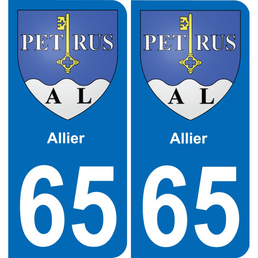 65 Allier placa etiqueta de registro de la ciudad