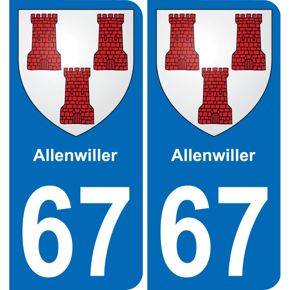 67 Allenwiller placa etiqueta de registro de la ciudad