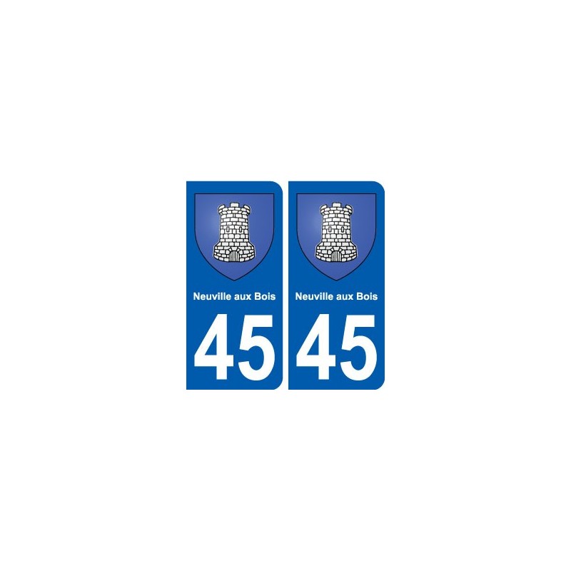 Pegatinas Pegatinas el tamaño de las placas de matrícula para el departamento de 45 Neuville-aux-Bois en el escudo de armas oficial y se ajustan a las dimensiones de las placas de los orígenes para el coche auto.
