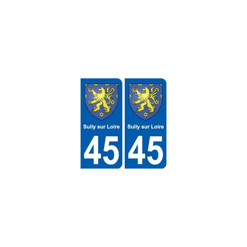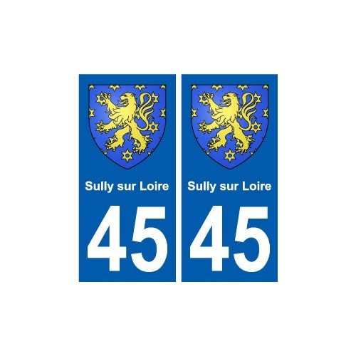 Pegatinas Pegatinas el tamaño de las placas de matrícula para el departamento de 45 de Sully-sur-Loire de la capa de brazos oficial y se ajustan a las dimensiones de las placas de los orígenes para el coche auto.