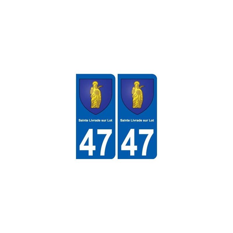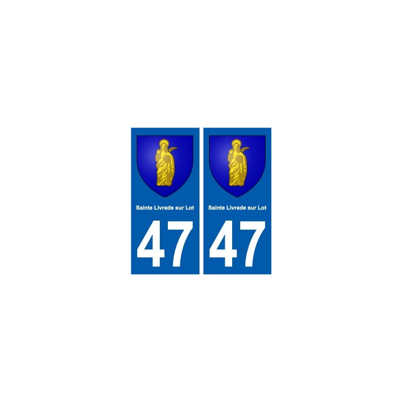 Pegatinas Pegatinas el tamaño de las placas de matrícula para el departamento de Cuarenta y siete Sainte-Livrade-sur-Lot escudo de armas la ciudad se ajusta a las dimensiones de las placas de los orígenes para el coche auto.