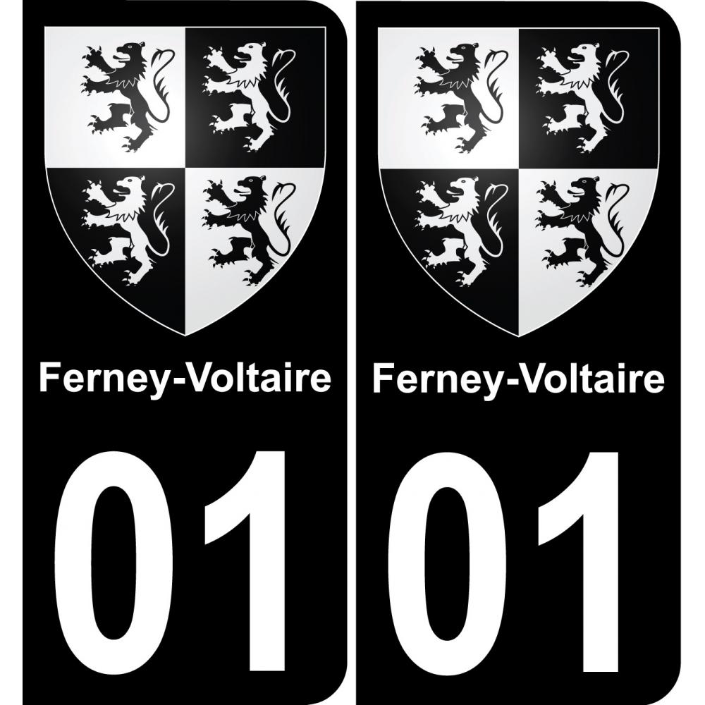 01 Ferney-Voltaire placa etiqueta de registro de la ciudad fondo negro