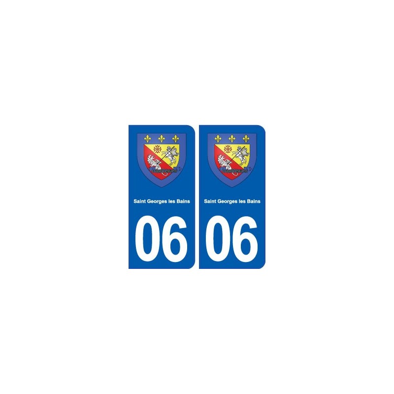 Pegatinas Pegatinas el tamaño de las placas de matrícula para el departamento de 06 de Saint-Georges-les-Bains escudo de armas oficial de la ciudad, y se ajustan a las dimensiones de las placas de los orígenes para el coche auto.
