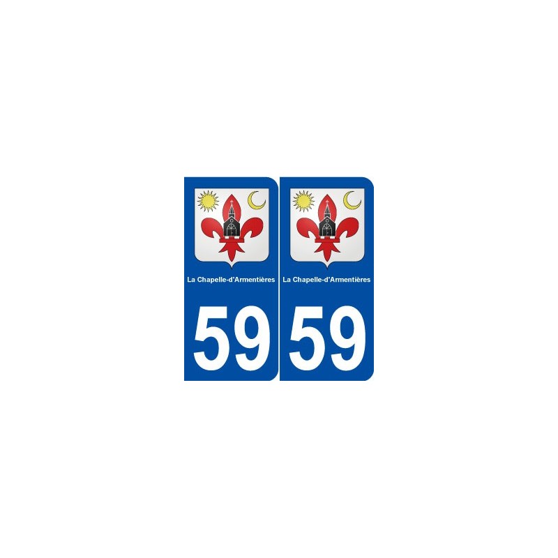 Etiqueta engomada de la placa de matriculación departamento 59 de La Chapelle-d''armentières escudo de armas pegatinas de la ciudad