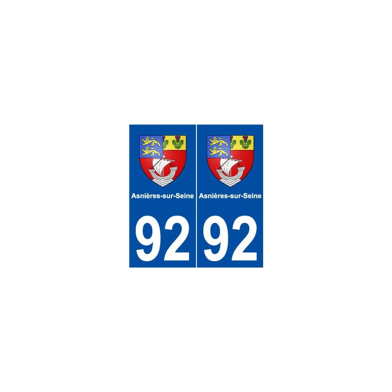 Etiqueta engomada de la placa de matriculación departamento 92 Asnieres-sur-Seine, escudo de armas pegatinas de la ciudad