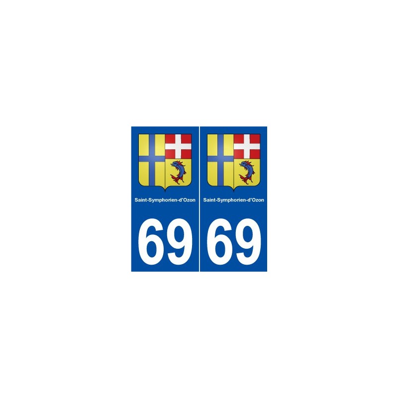 69 Saint-Symphorien-d''ozon escudo de armas de la etiqueta engomada de la placa de registro de pegatinas de la ciudad
