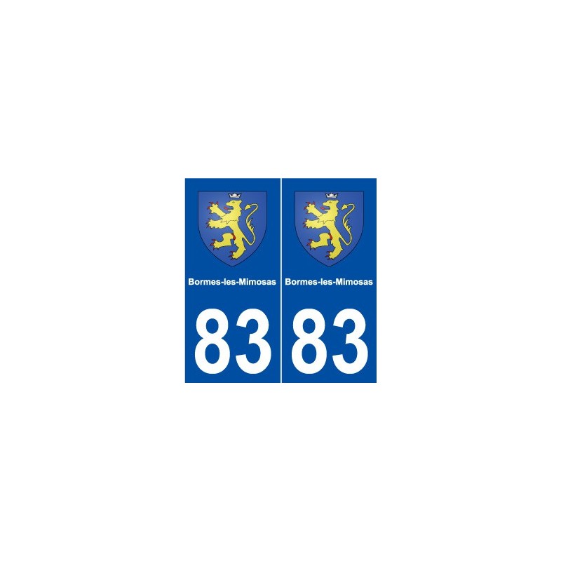 83 Bormes-les-Mimosas escudo de armas de la etiqueta engomada de la placa de registro de pegatinas de la ciudad