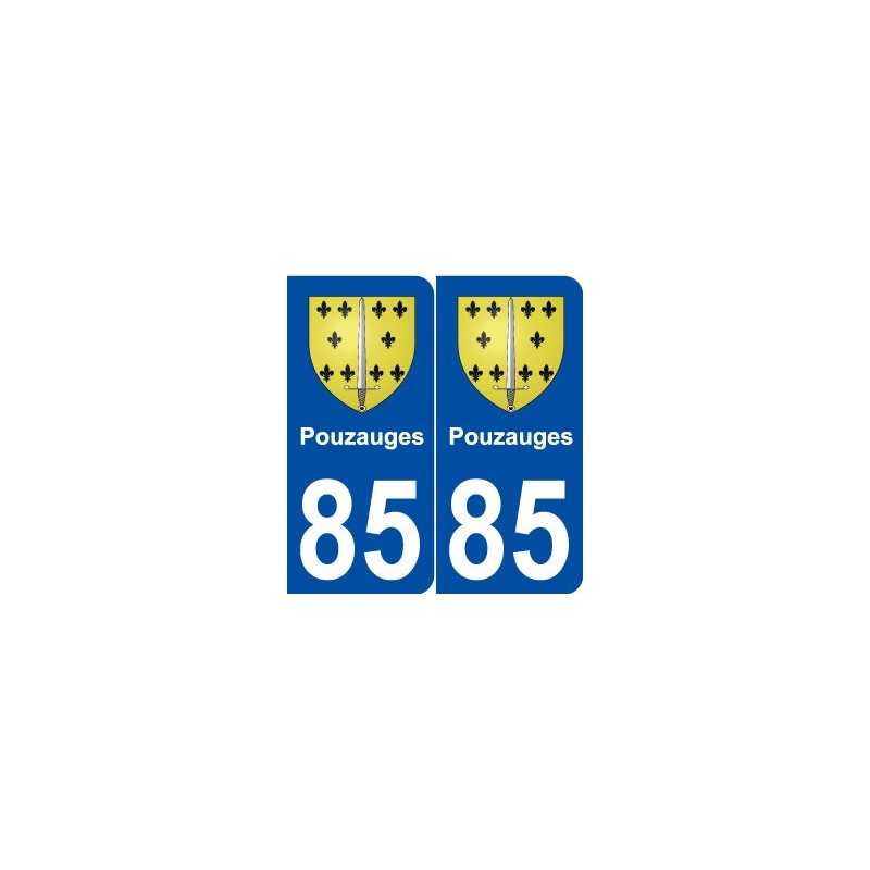 85 Pouzauges escudo de armas de la etiqueta engomada de la placa de registro de pegatinas de la ciudad