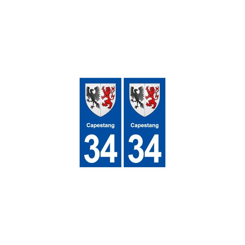 Pegatinas Pegatinas el tamaño de las placas de matrícula para el departamento de Treinta y cuatroCapestang escudo de armas la ciudad se ajusta a las dimensiones de las placas de los orígenes para el coche auto.
