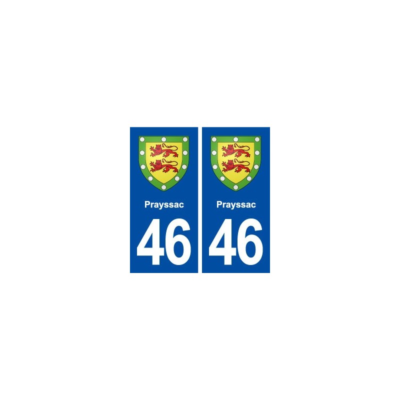 Pegatinas Pegatinas el tamaño de las placas de matrícula para el departamento de Cuarenta y seis Prayssac escudo de armas la ciudad se ajusta a las dimensiones de las placas de los orígenes para el coche auto.