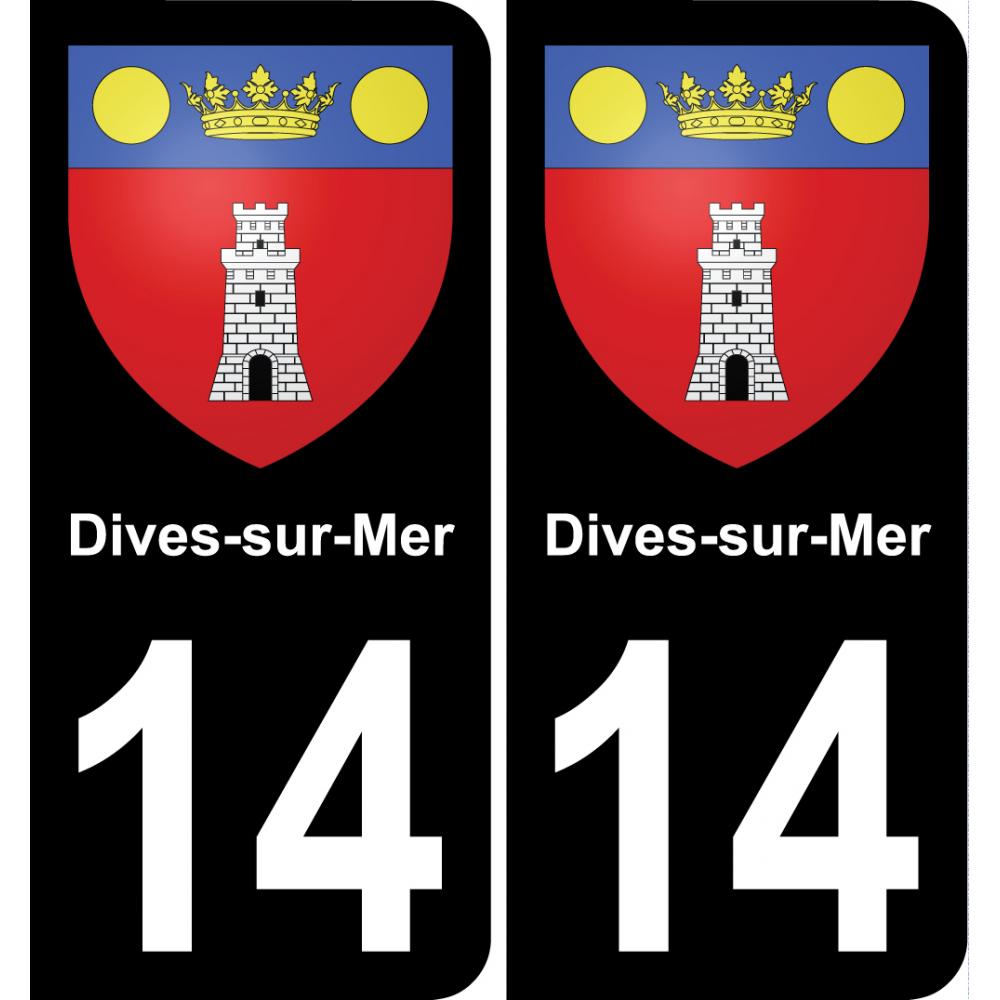 Etiqueta engomada de la placa de matriculación escudo de armas del departamento 14 Dives-sur-Mer ciudad