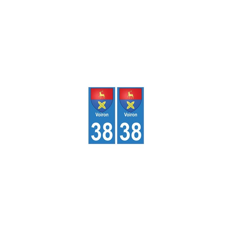Pegatinas Pegatinas el tamaño de las placas de matrícula para el departamento de 38 isère, ville Voiron escudo de armas y que se ajustan a las dimensiones de las placas de los orígenes para el coche auto.