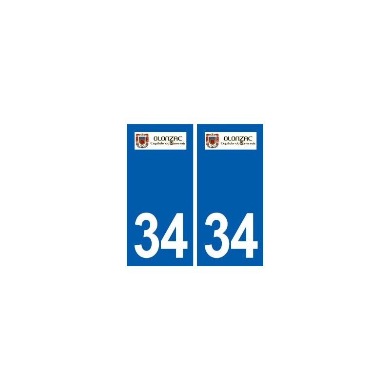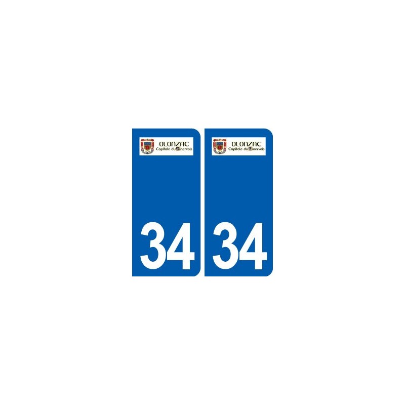 Pegatinas Pegatinas el tamaño de las placas de matrícula para el departamento de Treinta y cuatro Olonzac logotipo la ciudad se ajusta a las dimensiones de las placas de los orígenes para el coche auto.