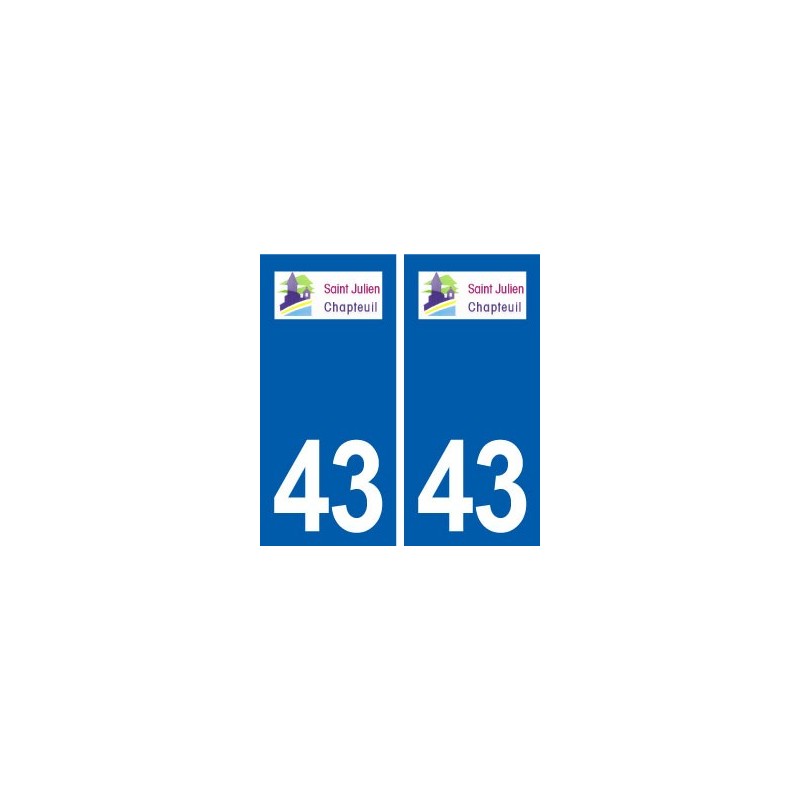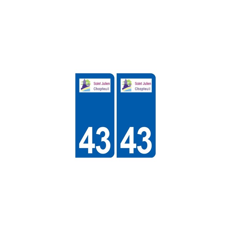 Pegatinas Pegatinas el tamaño de las placas de matrícula 43 de la ciudad de Saint-Julien-Chapteuil logotipo oficial y se ajustan a las dimensiones de las placas de los orígenes para el coche auto.