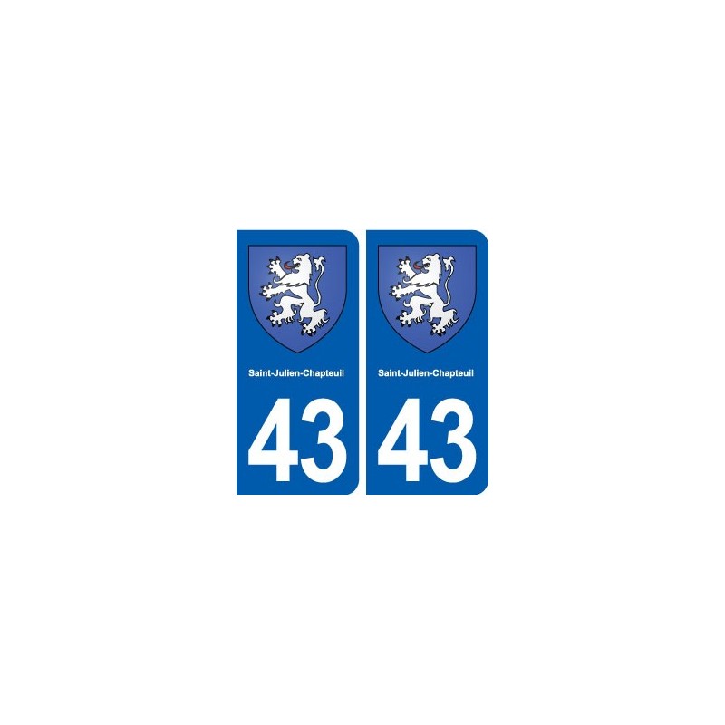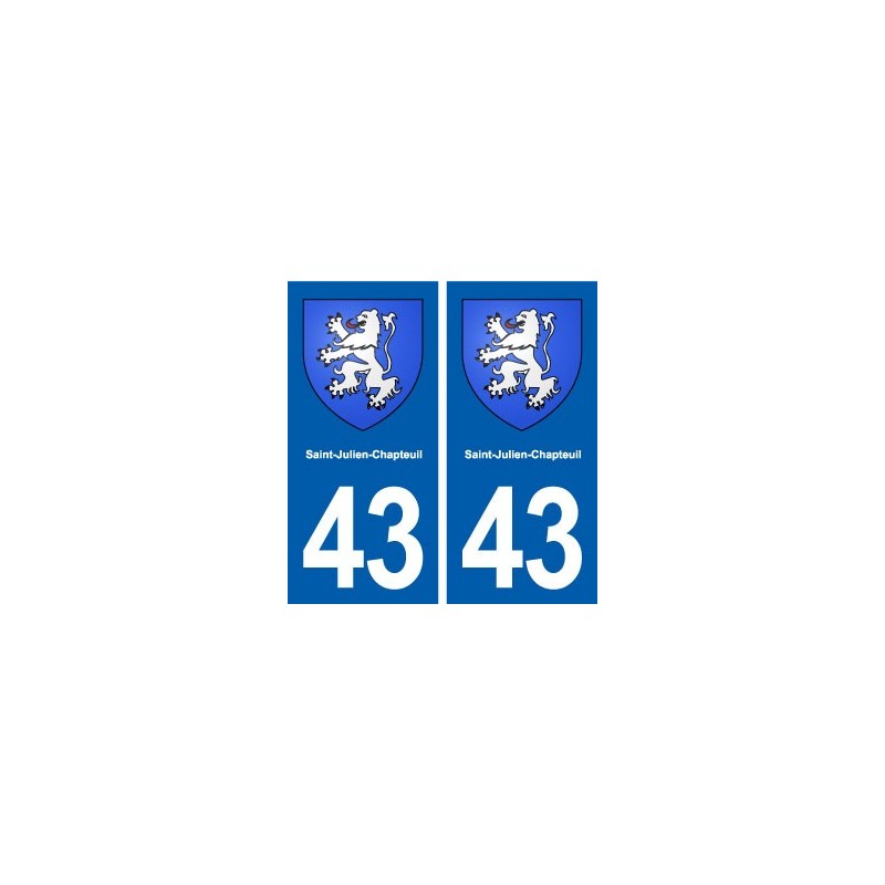 Pegatinas Pegatinas el tamaño de las placas de matrícula 43 de la ciudad de Saint-Julien-Chapteuil escudo de armas oficial y se ajustan a las dimensiones de las placas de los orígenes para el coche auto.