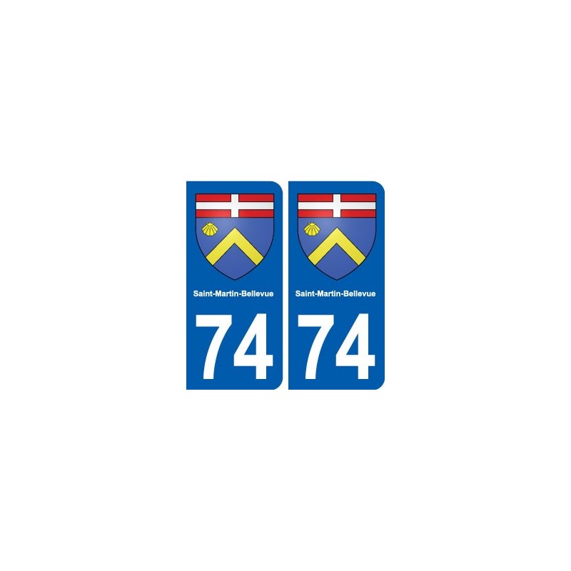 Etiqueta engomada de la placa de matriculación 74 Saint-Martin-Bellevue escudo de armas strickers de la ciudad