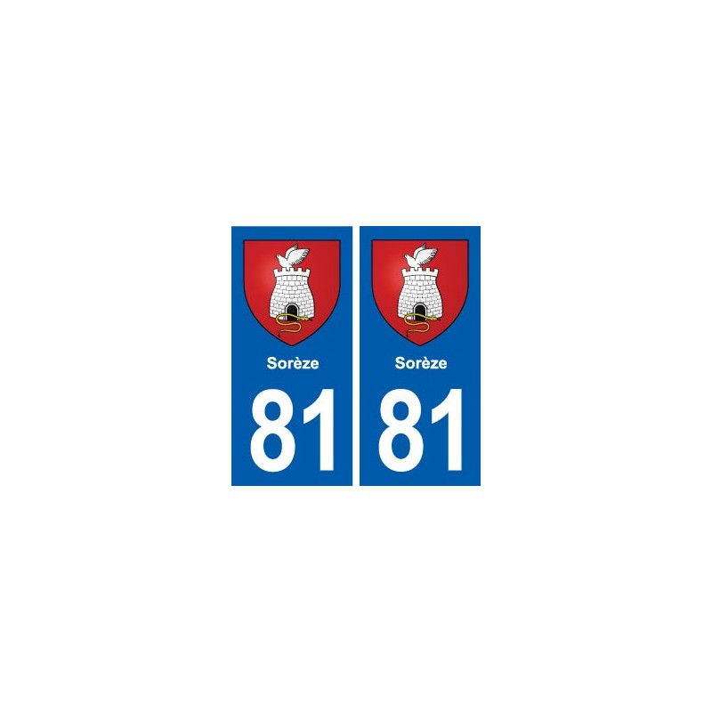 81 Sorèze escudo de armas de la etiqueta engomada de la placa de registro de pegatinas de la ciudad