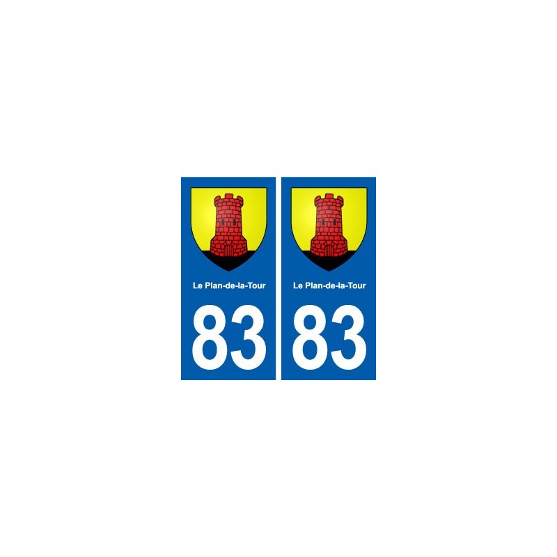 Etiqueta engomada de la placa de matriculación 83 El Plan-de-la-Torre del escudo de armas strickers de la ciudad