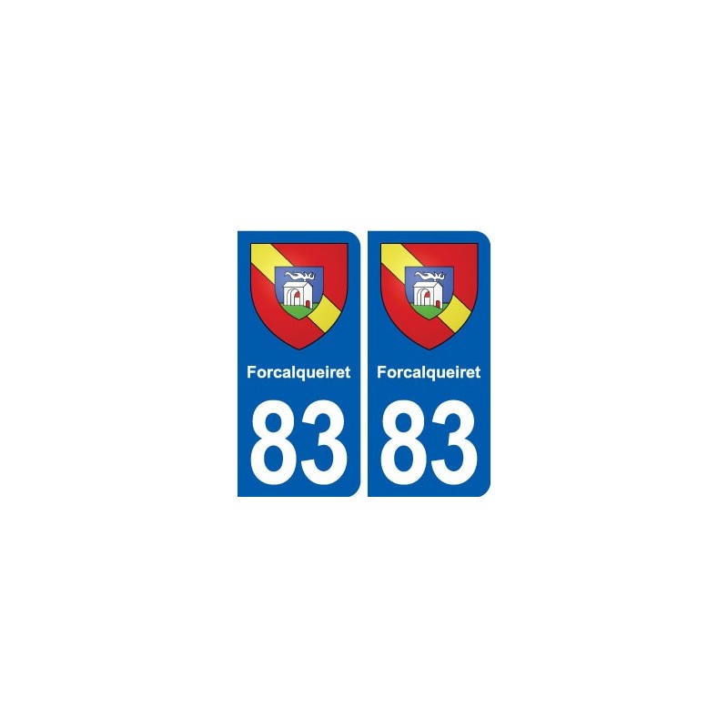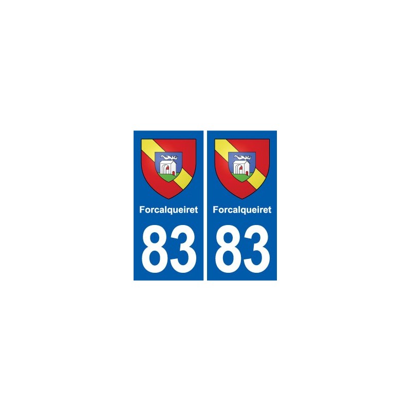 Etiqueta engomada de la placa de matriculación 83 Forcalqueiret escudo de armas strickers de la ciudad