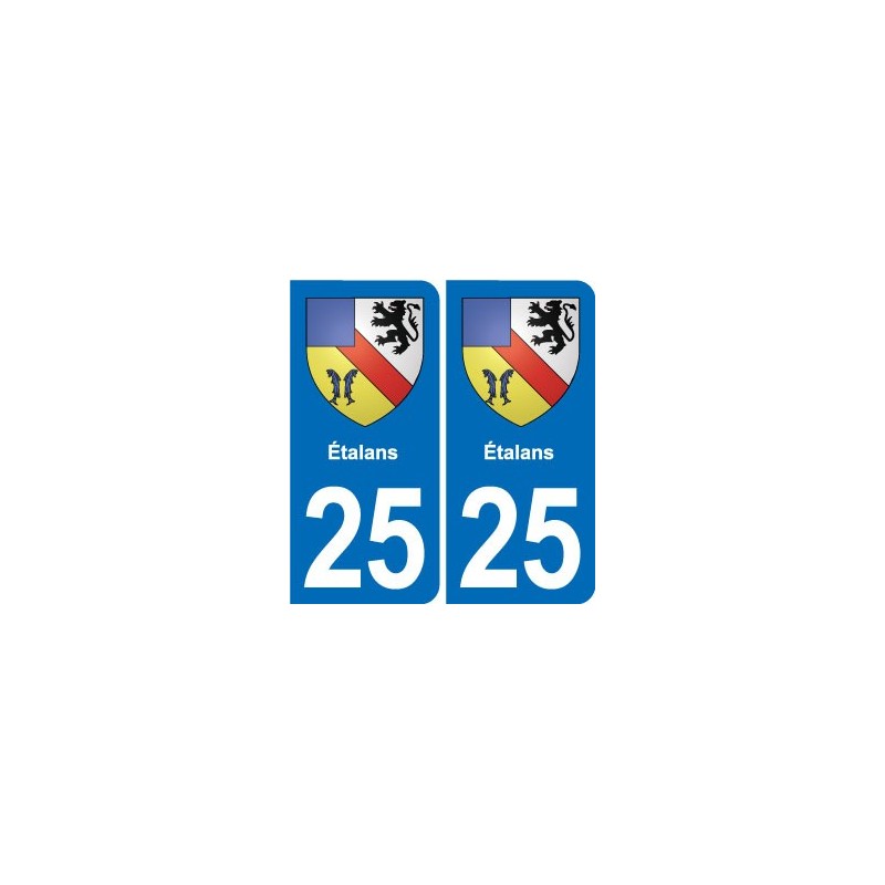 Autocollants Stickers aux dimensions des plaques d'immatriculation du département 25 étalans blason ville conforme aux dimensions des plaques d'immatriculations d'origines pour voiture auto.