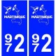 Autocollants Stickers aux dimensions des plaques d'immatriculation du département 972 Martinique et conforme aux dimensions des plaques d'immatriculations d'origines pour voiture auto.