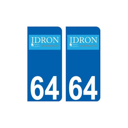 Autocollants Stickers aux dimensions des plaques d'immatriculation du département Idron ville 64 logo et conforme aux dimensions des plaques d'immatriculations d'origines pour voiture auto.